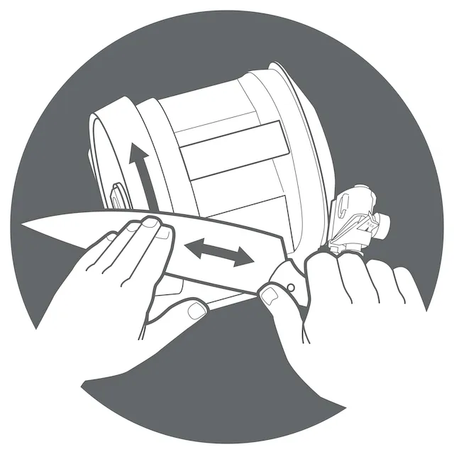 Insert the knife into the guide. Follow the shape of the knife and apply only a gentle pressure. Make sure you put the knife into the clamp.